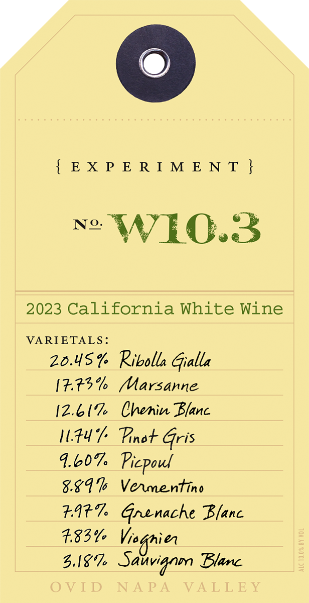 The 2023 Experiment W10.3 exudes notes of coyote mint, fresh cut hay, brioche and jasmine that beguile and intermingle with lively aromas of passion fruit, apricot, fresh peach, lychee and cantaloupe. Vibrant and fresh with a compelling richness across the palate this wine beautifully captures the lavish and delightful 2023 growing season.
